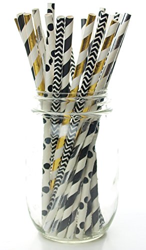 -. Title : Graduation Party Supplies, Graduation Straws (25 Pack) - Black, Silver & Gold Graduation Party Decorations, Cap & Gown High School & College Graduate Parties Supply