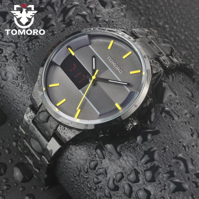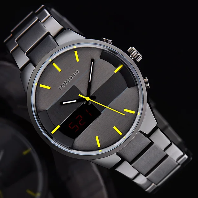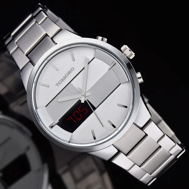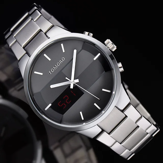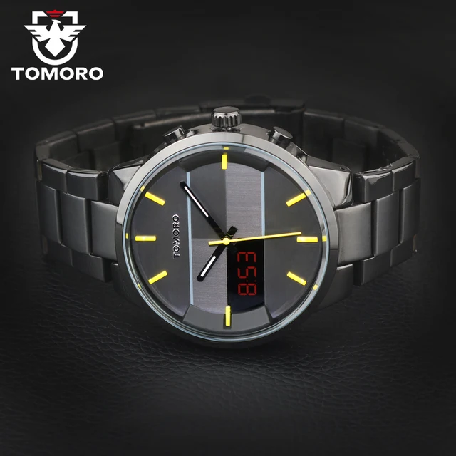 | [해외] 패션 간단한 세련된 최고 럭셔리 브랜드 tomoro 디지털 lcd 시계 남성 블랙 닦았 스틸 밴드 다이얼 석영 시계 시계 남자 2016 |