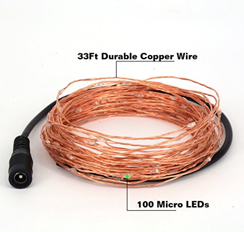 - Flexible & Durable: 100 micro super bright LED lights on 33Ft long ultra-thin copper wire with 3 inches distance between LED bulbs, you can use it to cover virtually any area or structure and increase the visual appeal in your setting