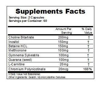 -. Title : Lipotropics Max # Energy Lipotropics Fat Burner with Choline Bitartrate, InositolBetaine HCL, Methionone, Gymnema SylvestrisGuarana, L-Carnitine, Chromium Polynicotinate 120cap