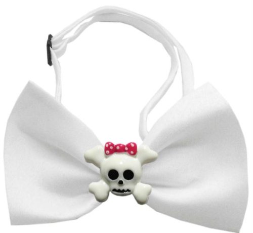 -. Binding : Misc. -. Brand : Mirage Pet Products -. Color : White -. EAN : 0099994441203 -. Feature : Fits small to medium size dogs / Great for dressing up and fun events / Fits a neck size of 9"-16" -. Label : Mirage Pet Products -. Manufacturer : Mirage Pet Products -. Model : 47-37 WT -. MPN : 47-37 WT -. PackageQuantity : 1 -. PartNumber : 47-37 WT -. ProductGroup : Pet Products -. ProductTypeName : PET_SUPPLIES -. Publisher : Mirage Pet Products -. Size : Small -. Studio : Mirage Pet Products -. Title : Mirage Pet Products 47-37 WT Girly Skull Chipper White Bow Tie, Small -. UPC : 099994441203