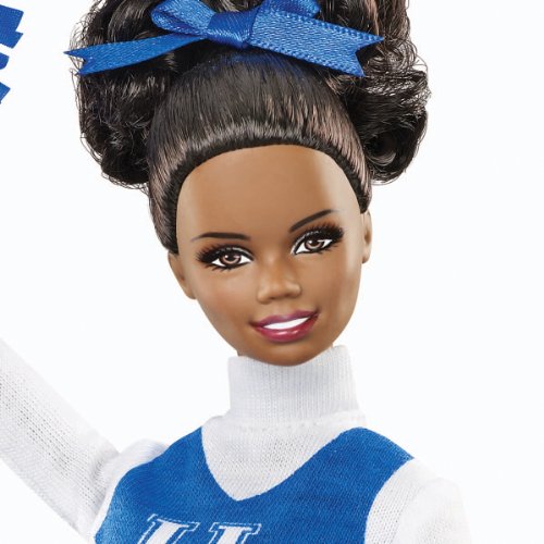 Perfect for any Kentucky fan, this cheerleader doll celebrates school spirit dressed in her team uniform. The Barbie University of Kentucky Doll features a blue and white get-up in honor of her favorite team.Barbie University of Kentucky Doll, African American:Cheerleader dollCelebrates school spiritSports University of Kentucky uniform in white and blueIncludes doll, outfit and pom-pomsDoll stands 13" tallFeature