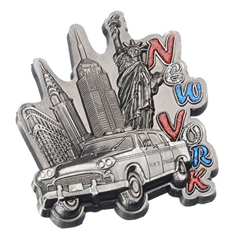 New York Cab Souvenir Metal Fridge Magnet NY Statue of Liberty NYC Empire State Building Chrysler Building Flatiron Building Metal Magnet