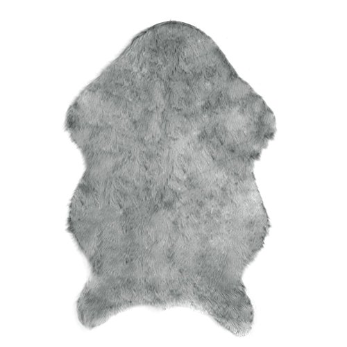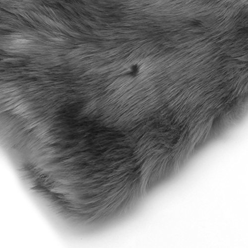 Slaxry Faux Sheepskin Rug Carpet with Super Soft Fluffy Thick Fur fits in Living Room Bedroom or Couch Decor Chair Cushion Washable, Approx. 2ft. x 3ft. (Grey)