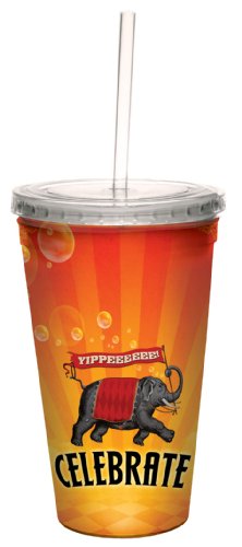 Tree-Free Greetings 80544 Celebration Elephant Yippee Art by Duirwaigh Gallery Artful Traveler Double-Walled Cool Cup with Reusable Straw, 16-Ounce