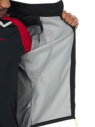 Product Description Lightweight waterproof rip-stop fabric. ? elasticated collar with microfleece fabric inside for a better comfort. ? air vent back joke. ? store-bag with Velcro loops to carry the jacket under the bike seat. ? elasticated lower back profile to keep jacket in position 0