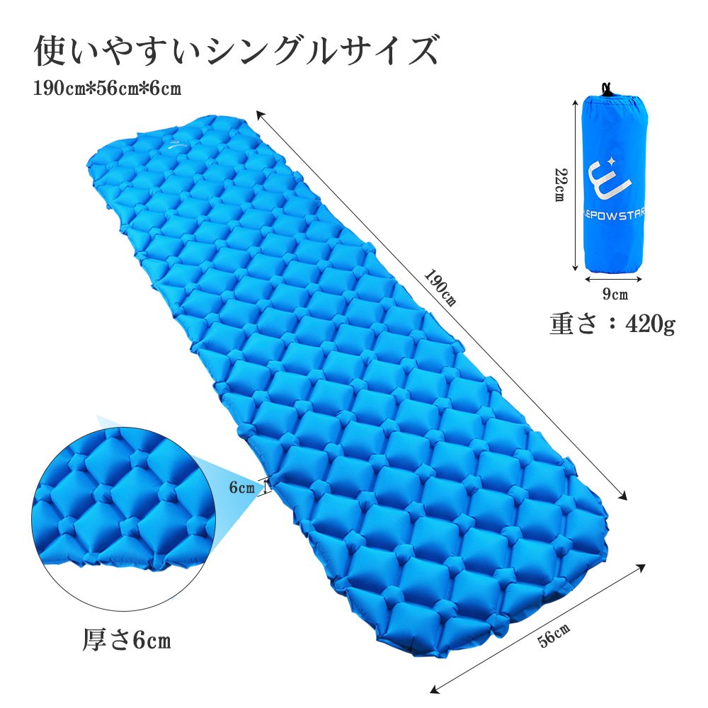 1. After expansion Size: Approx. 190 x 56 x 6 cm Storage size: 26.4 cm x 9.4 cm x 7.4 cm It is one third of the weight of conventional air mat and mini size.