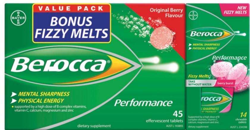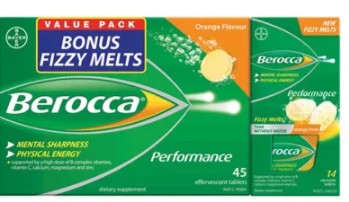 Berocca is an effervescent tablet that dissolves in water to create a refreshing orange / berry flavoured energy release drink. It contains a high amount of B u0026amp; C vitamins and minerals* that help you release energy and stay on top form. Magnesium contributes to normal energy release *contains zinc and magnesium. Nutritional Information