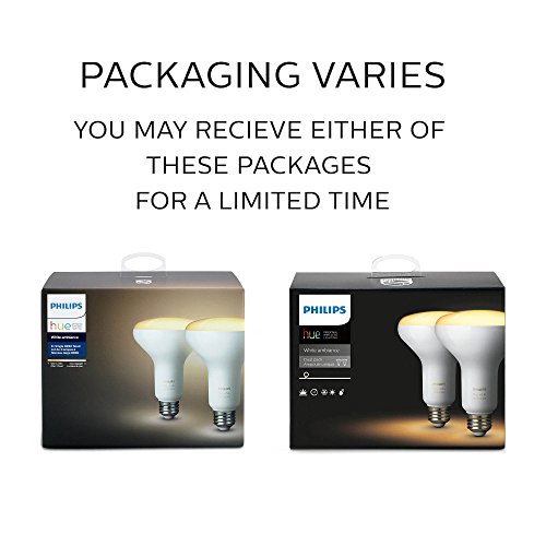 - This box includes two Philips Hue White Ambiance BR30 light bulbs, manual, and two-year warranty.
