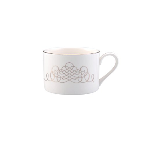 -. Feature : The pattern features feminine platinum banding inspired by monograms / Teacup holds 9 ounces / Platinum design on porcelain body / A fine platinum banding creates an elegant pattern / Hand wash only; not microwave safe