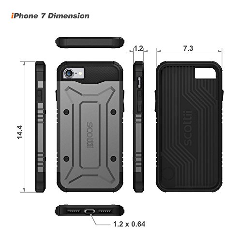 -. Binding : Wireless Phone Accessory -. Brand : Scottii -. Feature : Red Exterior and Triple Cushions in each corner provide maximum drop protection / Slim profile fits comfortably in your hand without sacrificing protection / Dual-layers of tough polycarbonate and shock absorbing TPU ensure device safety / Raised Bezels on the front and back of the case lift the screen and camera off of flat surfaces. / Compatible with iPhone 7 -. Label : Scottii -. Manufacturer : Scottii -. Model : SCTA70 -. PackageQuantity : 1 -. ProductGroup : Wireless -. ProductTypeName : WIRELESS_ACCESSORY -. Publisher : Scottii -. Studio : Scottii -. Title : iPhone 7 Case, Scottii [Tactical Titan] Apple iPhone 7 Case [Drop Protection]