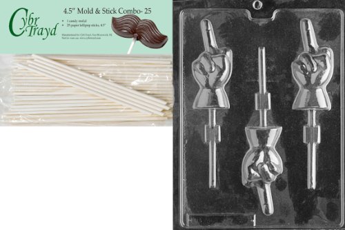 Cybrtrayd 45St25-XX552 Finger Lolly Chocolate Candy Mold with 25 Lollipop Sticks, 4.5-Inch