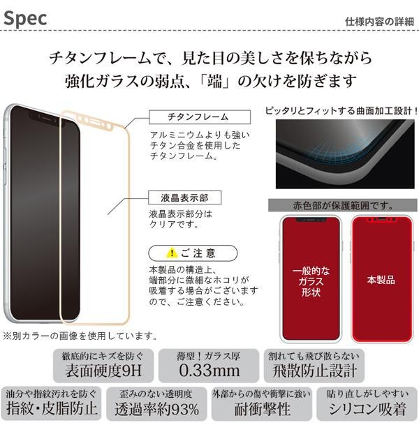 | 液晶画面の周りが丈夫なチタン合金で覆われているため、端をぶつけても欠けにくく、見た目も美しい仕上がりに。液晶部分には表面硬度が9Hの強化ガラスを使用し、キズ・汚れから徹底的に守ります。薄さわずか約0.33mmなのでiPhoneの薄さを損ないません!! |