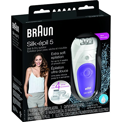 Braun Silk-épil 5 5-541 Women's Epilator, Electric Hair Removal, Wet & Dry, with a Bikini Trimmer, White/Purple