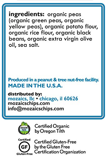 - Crafted with organic ingredients you can spot: green peas, yellow peas, potatoes and black beans. These chips are not fried or baked. They're popped, then lightly misted with organic extra virgin olive oil for a delicious crunch.