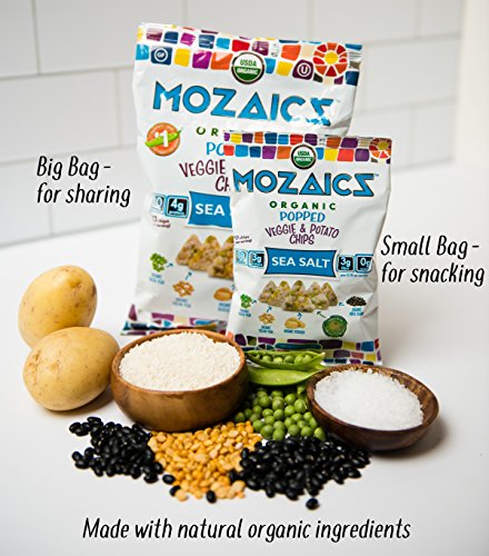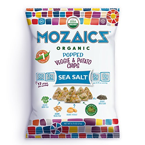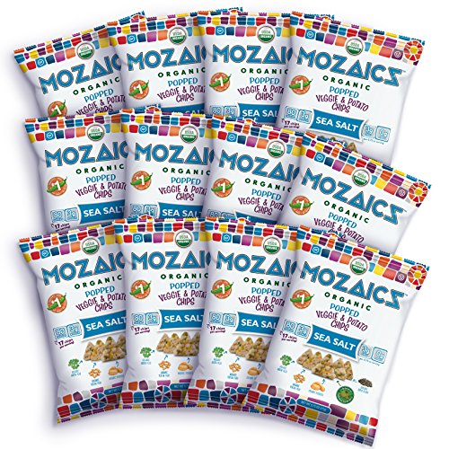 Mozaics Organic Popped Veggie & Potato Chips, 0.75oz Snack Bags (Sea Salt, 12-pack)