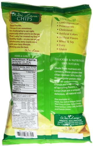 Wai Lana Herb & Garlic 3 Ounce Cassava Chips (Gluten-Free & Vegan) Pack of 6