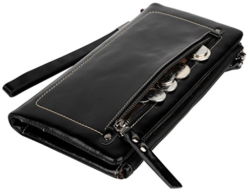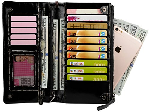 -. Feature : Ultra Soft Cow Leather with waxing finish,luxury looking and top notch. / Tarnished colored hardware,heavy duty zipper and detailed contrast stitching brightens up the wallet. Fit checkbook and passport. / 16 card slots including an ID Window, 3 full-length zipped pockets and a outer coin pocket. Your phone, cash and checkbook can fit in it nicely. Fit up to IPHONE6s Plus / Samsung Galaxy S4/S5/S6/S7, Samsung Galaxy Note 3/4/5, LG G3/G4. / Multi-storey fold is designed for you to keep your things oraganized well and easy to use. / Dimensions: 8.74"L x 4.44"W x 0.86"H .The Weight is 0.41 pound