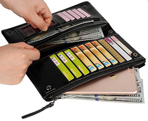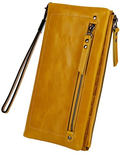 -. Title : YALUXE Women's Large Capacity Soft Real Leather Wristlet Wallet Checkbook Passport Holder