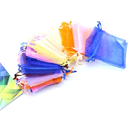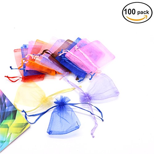 IDS 100 Pieces Organza Gift Bags Mixed Colors Wedding Party Favor Bags Drawstring Jewelry Pouches,7x9cm
