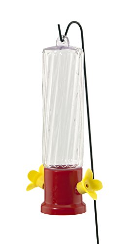 -. Feature : Audubon decorative swirl plastic reservoir sits atop twist off red base with two nectar ports / Small feeder holds 3 oz. Nectar