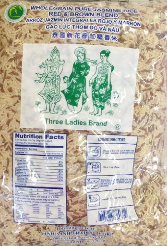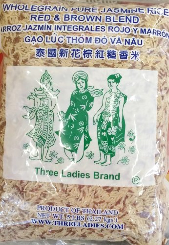 5 Pounds Three Ladies Brand Whole Grain Pure Jasmine Rice Red & Brown Blend (One Bag)