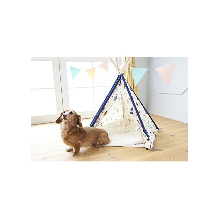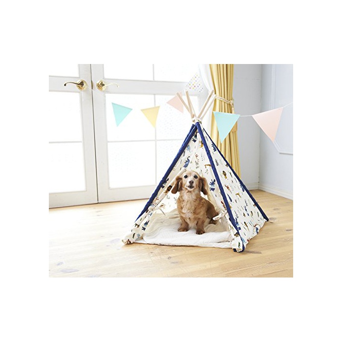 목재와 천이 기분이 상쾌한 텐트풍 개집입니다