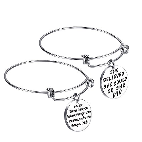 One lot including 2pcs expandable inspirational bracelets: You're Braver Than You Believe Stronger Than You Seem And Smarter Than You Think / She Believed She Could So She Did - Let these words be your anchor and your reminder that you have the strength and the will to do what it takes. There is nothing that you can't accomplish if you put your mind and heart to it. Always believe that you can, and you will.