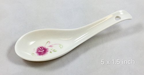 Chinese Porcelain Soup Spoons with Pink Floral Design - Set of 4