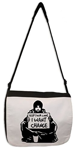-. Brand : Tribal T-Shirts -. ClothingSize : One Size -. Color : Black -. EAN : 5055884314113 -. Feature : Classic messenger bag. / Will fit a standard size 14" laptop. / The bag has a capacity of appoximately 12 litres. / It is made from tough waterproof polyester. / The dimensions are 37.5 x 30 x 10.5cm. -. Label : Tribal T-Shirts -. Manufacturer : Tribal T-Shirts -. MPN : ba_iwantchange_mbag -. PartNumber : ba_iwantchange_mbag -. ProductGroup : Apparel -. ProductTypeName : HANDBAG -. Publisher : Tribal T-Shirts -. Size : One Size -. Studio : Tribal T-Shirts -. Title : Tribal T-Shirts Banksy I Want Change Laptop Messenger Bag