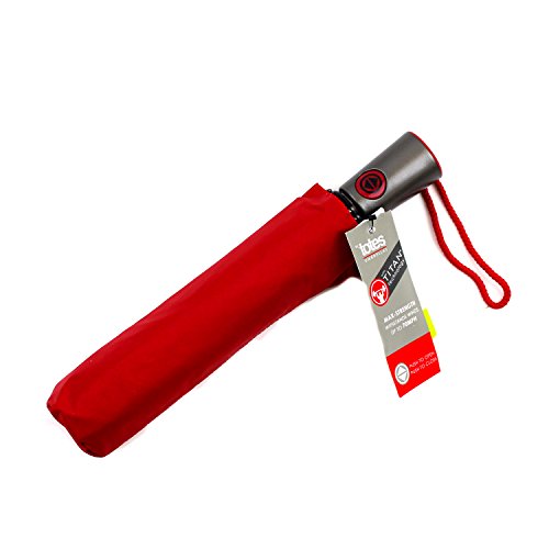 -. Brand : Totes Corp. -. Department : unisex-adult (luggage only) -. Feature : Auto open and close -- one push of the button opens the umbrella, one push closes it / Maximum strength frame withstands winds up to 70mph to prevent umbrella inversion / Totes Coat application repels water for superior rain protection / Holding Strap With Colorful Matching Button, Top, Back Design Handle / Large Coverage: 43" Arc -. ProductGroup : Apparel -. ProductTypeName : LUGGAGE -. Size : One Size -. Title : TOTES MINI AUTO OPEN AUTO CLOSE W TITAN TECH UMBRELLA