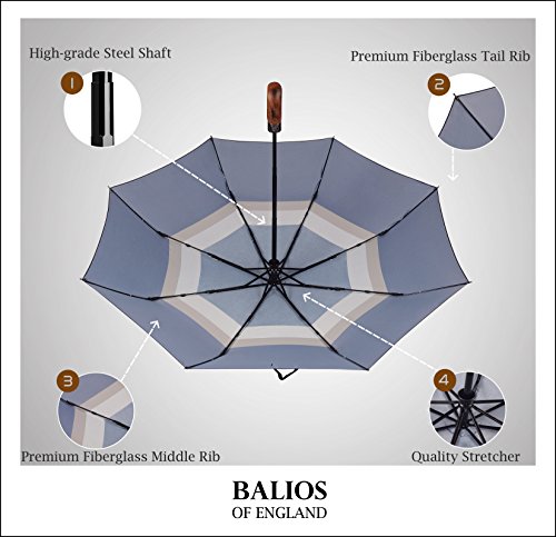-. Binding : Misc. -. Brand : Balios -. Feature : ► THE PERFECT LIFESTYLE ACCESSORY - Every detail of our umbrellas are designed with the user in mind from the perfect compact size at only 12.6 inches long when closed to the weight at less than a pound (0.85 lb). Our simple and intuitive one click auto open design unveils a 39.4inch (diameter) span protective cover. When finished, simply press the one click button again to close the umbrella with speed and ease. -. IsMemorabilia : 0 -. Label : Balios -. Manufacturer : Balios -. ProductGroup : Sports -. ProductTypeName : SPORTING_GOODS -. Publisher : Balios -. Studio : Balios -. Title : Balios Prestige Travel Folding Umbrella, Handmade Wood Handle, Auto Open & Close