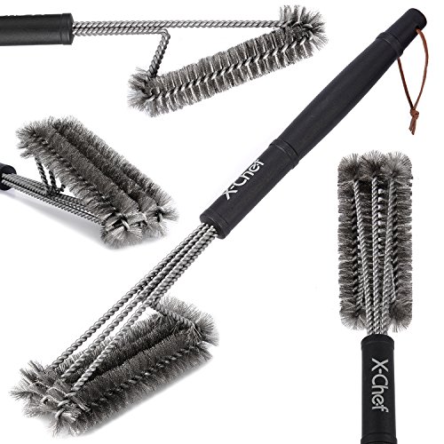 X-Chef 18" BBQ Cleaning Brush 3 in 1 Grill Wire Brush with 1 Bonus Barbecue Brush, Perfect Cleaner & Scraper for Grill Cooking Grates, Racks, & Burners