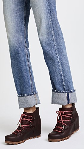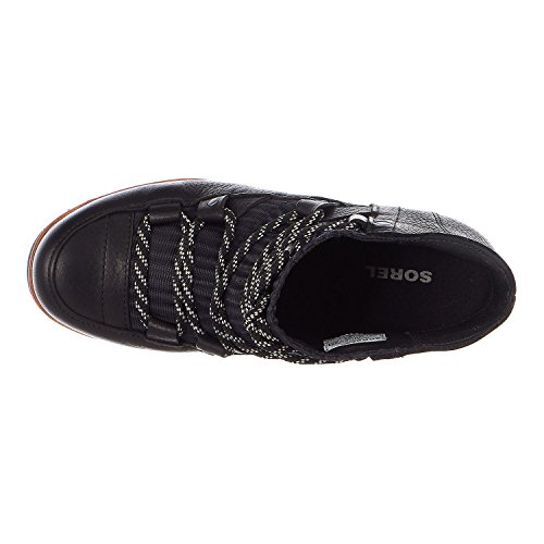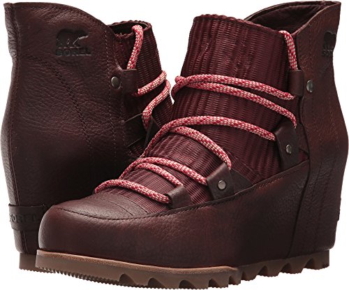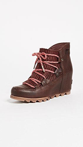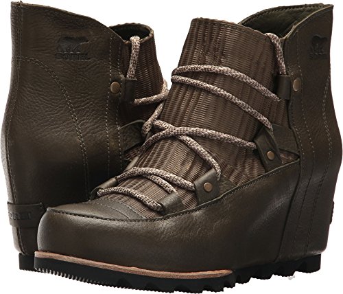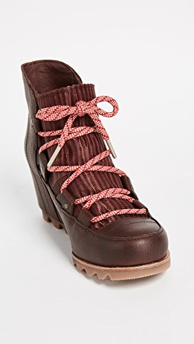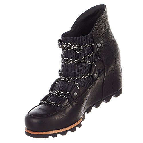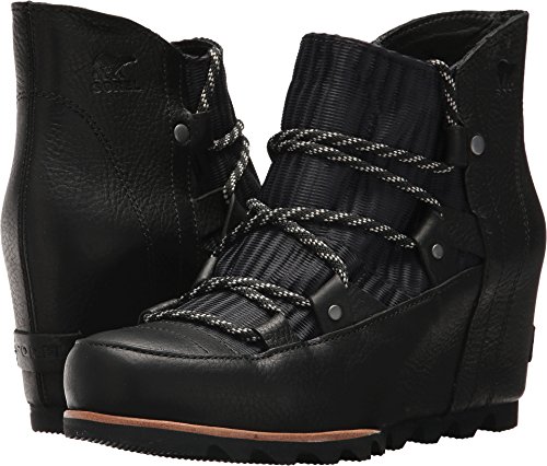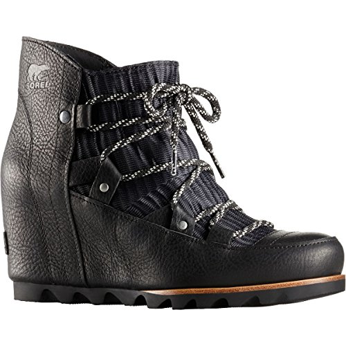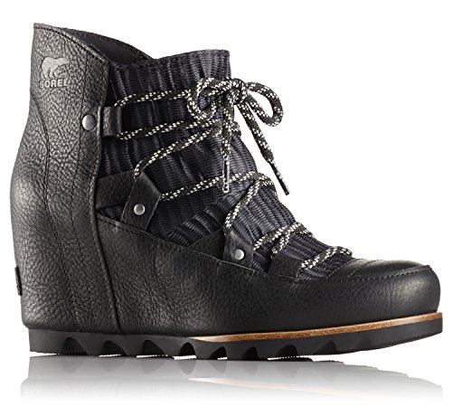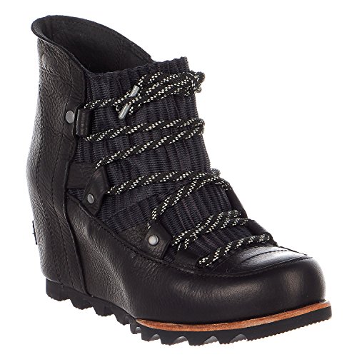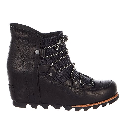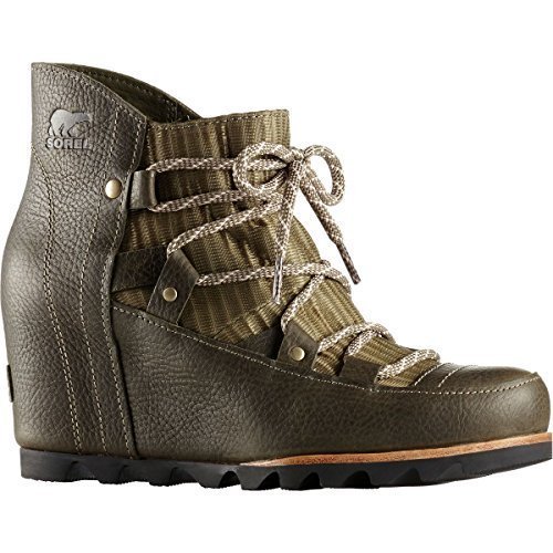Product DescriptionWaterproof Sorel booties in pebbled leather and tonal nylon. A hidden wedge adds a lift. Lace-up ties crisscross at the front. Ridged rubber sole.0