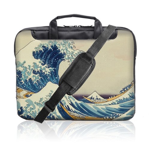 -. Title : TaylorHe 15.6 inch 15 inch 16 inch Hard Wearing Nylon Colourful Laptop Shoulder Bag with Patterns, Side Pockets Handles and Detachable Strap Vintage Great waves of Kanagawa