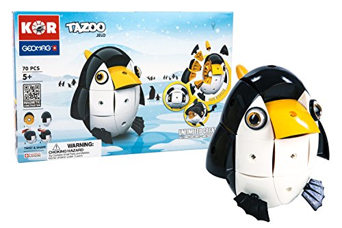 -. Feature : REVOLUTIONARY MAGNETIC ENGINEERING - This playset lets kids engage in diverse constructive play with just one toy. A patented system of magnetic building blocks that connect onto a metal sphere core, get ready to twist, transform, disassemble, and reassemble! Fully compatible with other Kor sets for added creativity and ingenuity. / KOR TAZOO TOCO TRANSFORMER - In space a geomagnetic storm caused a migration of Kor asteroids. After landing on earth, they created zany, transformative animals. Jelo is a cute penguin that can become a panda, killer whale, or anything else you can imagine! Unisex for both boys and girls. / EDUCATIONAL AND STIMULATING - Geomag's award winning line of products help children of all ages develop imagination and curiosity through the science of magnetic construction. Each year, Geomag introduces new and innovative toys that entertain, delight, and stimulate young and growing mental faculties. / SWISS MADE FOR SAFE PLAY - Geomagworld SA manufacturing complies with the most rigorous European and international safety standards. At our facility in Novazzano, Switzerland we follow each production phase step by step to ensure each product adheres to the highest safety standards. / SPECIFICATIONS - Geomag Kor TAZOO Jelo contains 70 pieces. Warning: CONTAINS SMALL PARTS. Not suitable for children under the age of 3. Recommended for children ages 5 and up. Warning: CONTAINS STRONG MAGNETS. Keep away from sensitive devices such as credit cards, computers, magnetic media and medical devices like pacemakers.