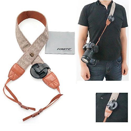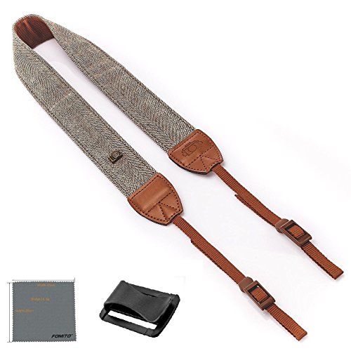 Fomito Camera Shoulder Neck Strap Vintage Belt for All DSLR Camera Nikon Canon Sony Pentax Classic White and Brown Weave