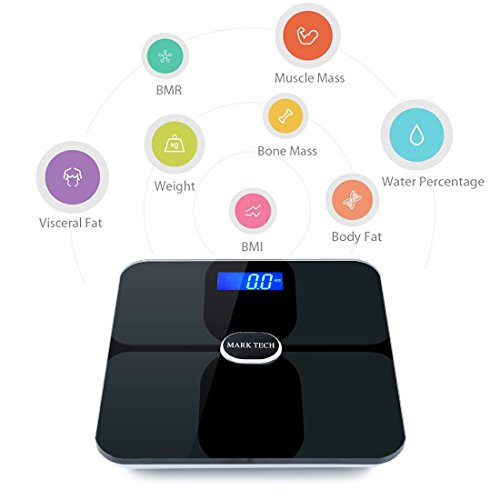 Studio : MARKTECH Publisher : MARKTECH Binding : Health and Beauty Product Description MARKTECH Smart Bluetooth Body Fat Scale: Focus on Quality and Service ?Measuring Function - MARKTECH smart scale uses the accurate BMI Technology to track your body`s information about weight, BMI, body fat, muscle mass, water, BMR, bone mass and visceral fat, making it clearly to track weight loss and health progress. ?Free Friendly App - Download our APP for FREE in Apple App/Google Play.Our APP is available for IOS or Android version 4.3 and Bluetooth 4.0(Or higher Version). APP can store health data for all your family members(for 8 members). ?Advanced Coating Design - International advanced ITO coating-tech for scale surface, it makes the scales more than 10 times more accurate than normal body fat scale that with 4 electrode areas. And with intelligent chip and the most sensitive G type sensor, fat rate can be worked out precisely. Accurate perception of 0.1KG, be careful, he knows when you make a hog of yourself. ?Explosion-proof Tempered Glass - It makes the scale safer to use with 6mm super tempered glass, withstand thuds. Weighing more than what your can image.