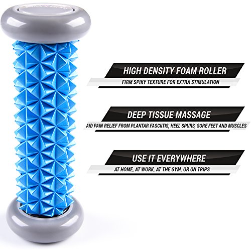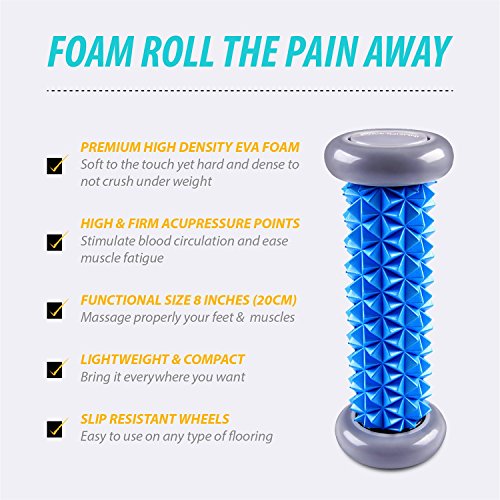 The roller is made of high density foam, a smoother material than plastic, and mirrors the feeling of an acupuncture massage. The spikes are slightly rounded at the edges so they don't hurt your skin. If you have especially tender or sensitive feet, leave your socks on for a gentle massage. Using our wheeled roller barefoot will provide deeper, more intense stimulation.