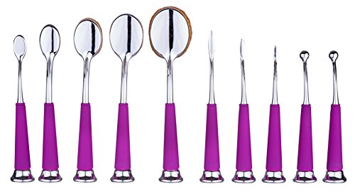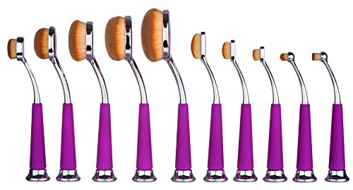 Beauty Kate Set of 10 pcs Professional Oval Pipe Makeup Brush Set (Purple+Silver)