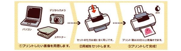 | ●家庭用のインクジェットプリンタで、好きなモチーフや写真をプリントできる♪ | | ●ほつれないから好きな形にカットできます♪ | | ●シールタイプだからガラスや缶などを可愛くデコできます♪ |