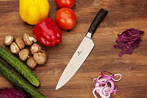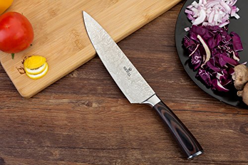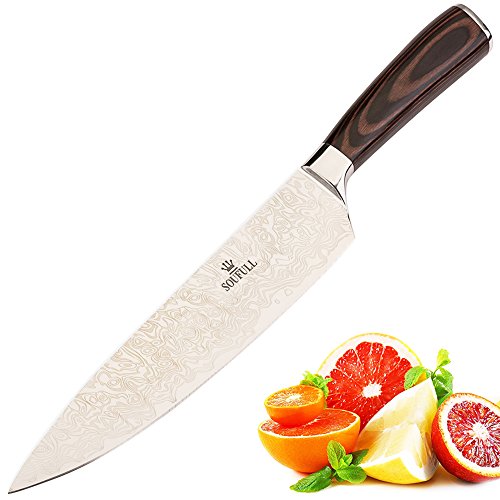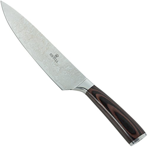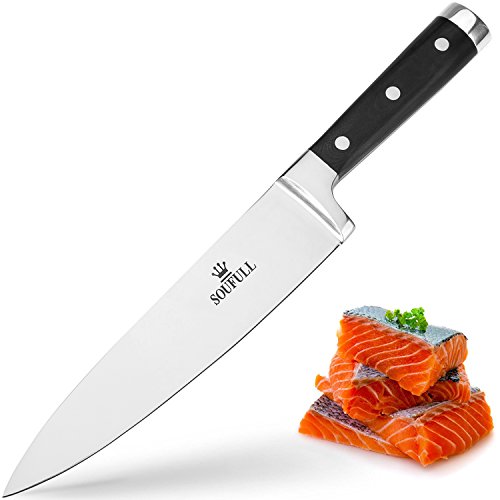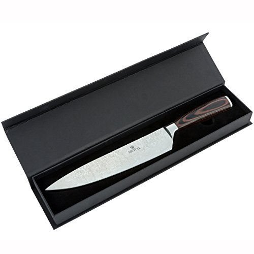Japanese Chef Knife , Soufull 8 inch Sturdy Stainless Steel Kitchen Knife with Razor Sharp Blade and Balanced Ergonomic Pakka Wood Handle with Gift Box