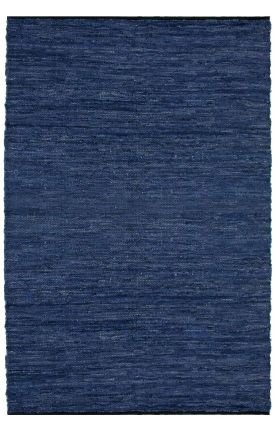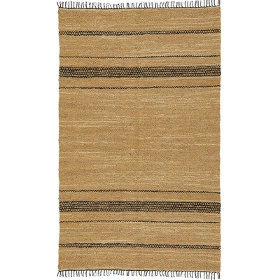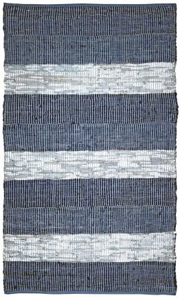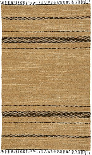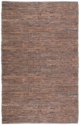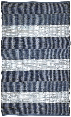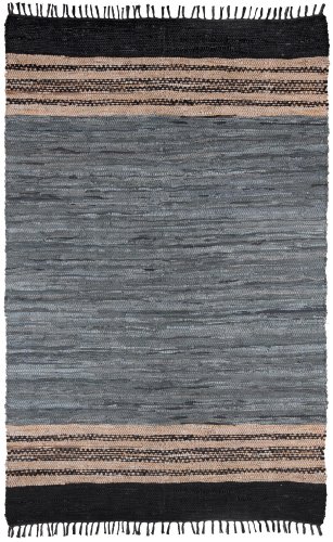 Durable as they are striking in design, the matador collection of leather rugs are meticulously made by hand-weaving leather strips as the weft of the rug and a fine cotton strand as the warp, resulting in a beautiful, rustic texture and interesting natural braided pattern. Add the smell and feel of real leather to any room with this hand woven leather rug. Made of soft leather interwoven with a cotton foundation, this rugged rug makes sense ecologically, aesthetically and economically. Hand made in villages of north central India, this rug features iron gray leather with accent stripes of tan and black leather with black cotton fringes. An elegant complement to any décor, this leather rug is completely reversible and extremely durable.Feature