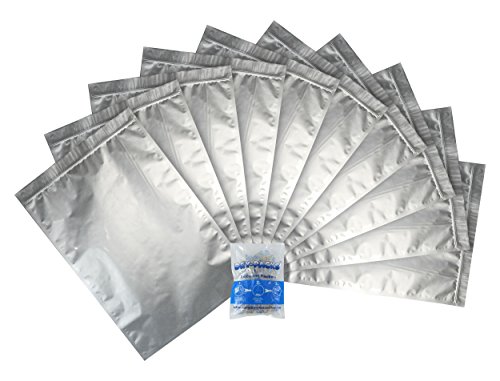 Dry-Packs 20x30" Aluminized Moisture Barrier & Static Shielding Zipper Bags with 10 Gram Silica Gel Packets (Set of 10), Silver
