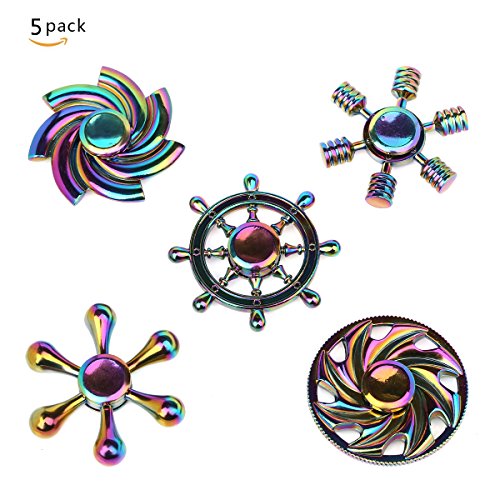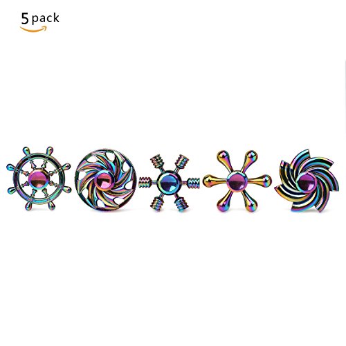 SCIONE METAL FIDGET SPINNER 5 PACK STAINLESS STEEL BEARING 3-5 MIN HIGH SPEED STRESS RELIEF SPIN ADHD ANXIETY TOYS FOR ADULT KID AUTISM FIDGETS BEST EDC HAND SPINNERS FINGER TOY FOCUS FIDGETING