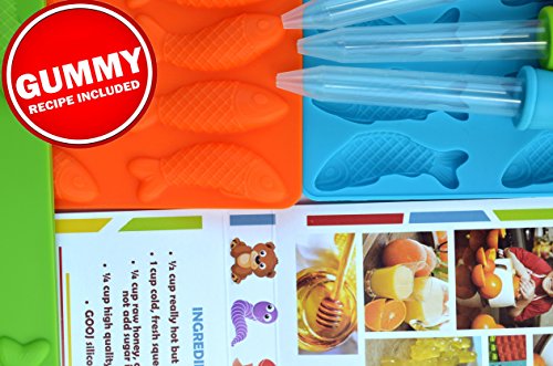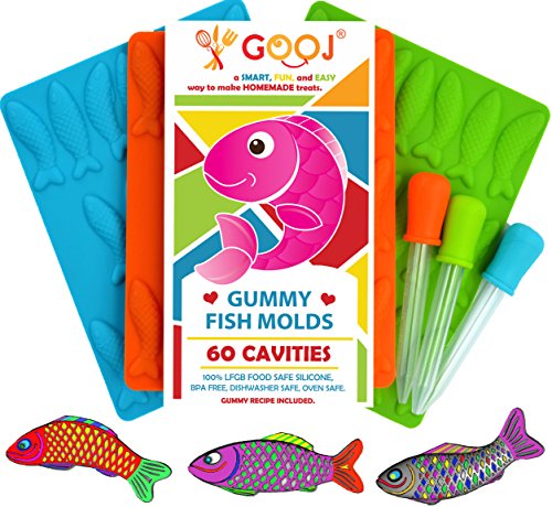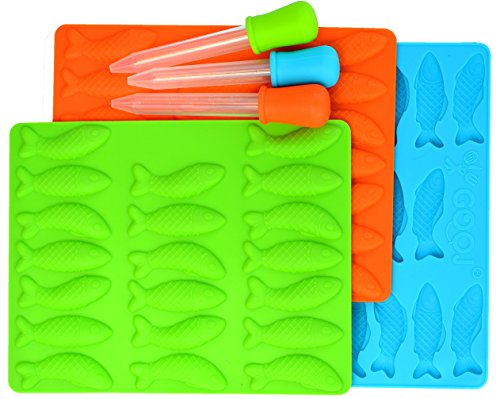 Premium 3 Pack of 60 Pieces Gummy Fish Candy Molds, 3 Droppers, + Easy Recipe Great for chocolate molds, BPA Free, Perfect For Ice tray