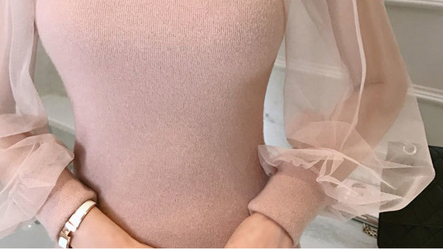 シースルー袖が、ちょっぴりセクシーさをプラス。