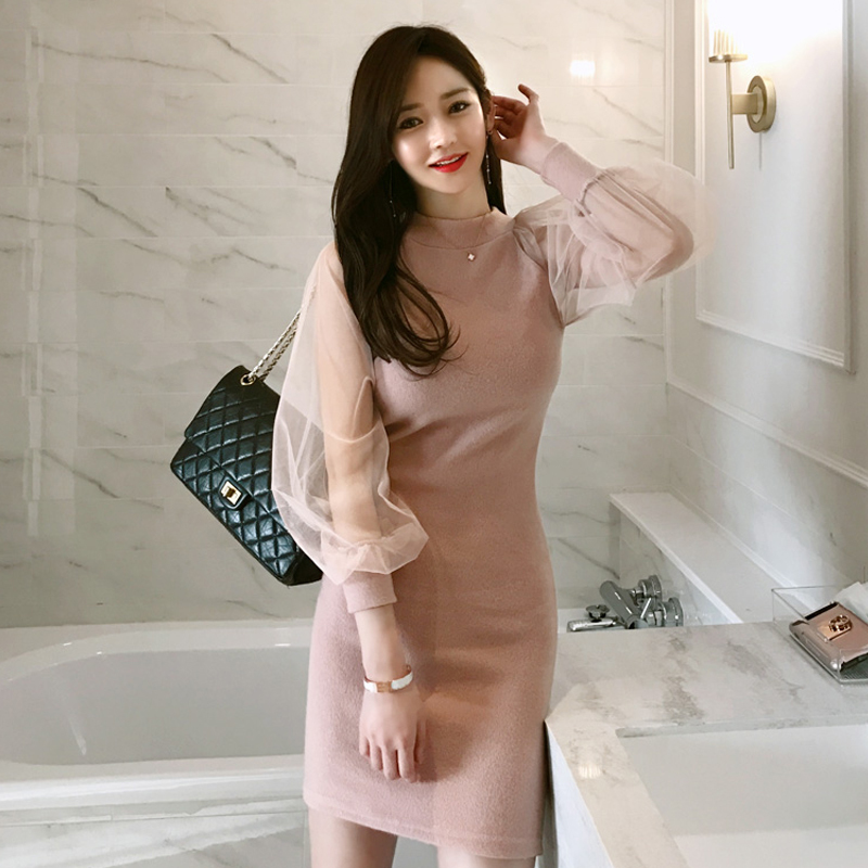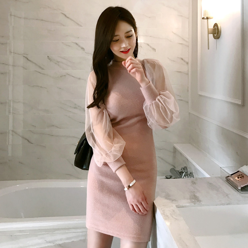 シースルー袖 タイトワンピース ワンピ セクシー バルーンスリーブ 10代 20代 30代 40代