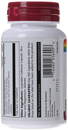 ReleaseDate : 2015-03-19 Studio : Solaray Publisher : Solaray Binding : Health and Beauty Product Description Losing your memory does not have to be a typical part of the aging process. Ginkgo biloba extract 60 mg from solaray can help you keep those memories safe and sound for years to come. 0