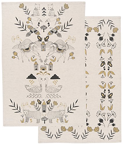 The Danica Studio Wild Tale Dishtowel Set includes two printed dishtowels, each measuring 18 inches by 28 inches.